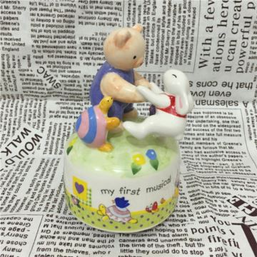ILOVEST陶瓷小熊与兔子旋转跳舞八音盒音乐盒创意生日圣诞节礼物