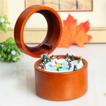 Sankyo木质旋转溜冰雪人八音盒音乐盒圣诞节新年创意礼物刻字定制