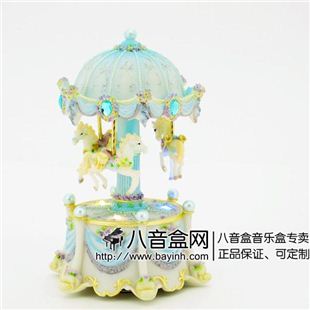 【产品名称】:台湾WSA正品蓝色炫彩变光玫瑰旋转木马音乐盒【音乐曲名】:蓝色款《记忆》 【产品尺寸】:宽度14cm直径8cm【包装尺寸】:长12cm 宽12cm 高18.8cm【产品重量】:净重0.4kg 【产品颜色】:蓝色【产品材质】:高档树脂