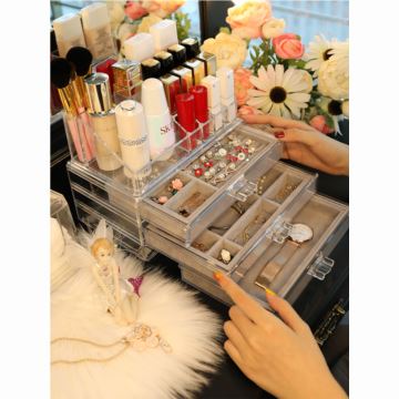 少女心亚克力首饰盒简约饰品耳环口红格收纳盒子手表耳钉整理托盘
