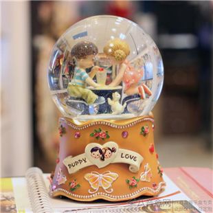 正品台湾万山WSA夏日之恋内旋转水晶球八音盒音乐盒 情人节创意礼品