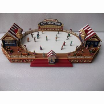 ①这是一款美国mr.christmas美丽世界系列之游乐场滑旱冰产品,产品使用dc6v变压器(不包括,可以代订)操作,工作时许多的人们在旱冰池里“横冲直撞”,好不热闹,左右两边各有两颗超亮的白光led照射这旱冰池,前面入口处有个售票亭,后面是一块醒目的大招牌“美丽世界溜冰池”,旱冰池外左右两边都是小食店,四周都用栅栏围着,栅栏上红旗随风飘扬,一些人们在长凳上坐下小憩或来回走动着;在led灯的渲染下再配上优美动听的音乐,彰显此款溜冰池的高档豪华。