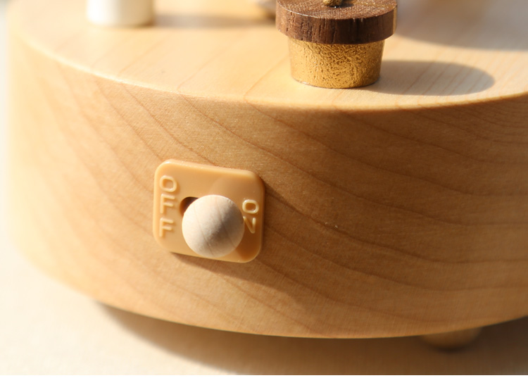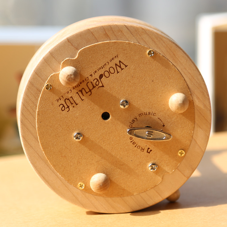 底部发条拧紧后,把开关拨到ON,音乐即可响起!