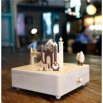 台湾jeancard枫木木质城堡马车旋转八音盒音乐盒创意七夕情人节生日礼物
