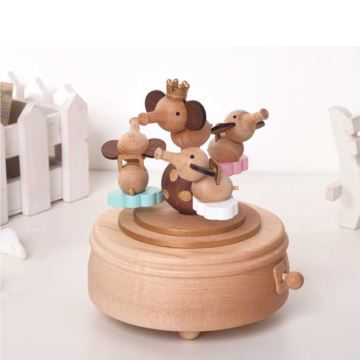Jeancard台湾枫木木质小飞象乐园旋转八音盒音乐盒创意生日礼物送男女生